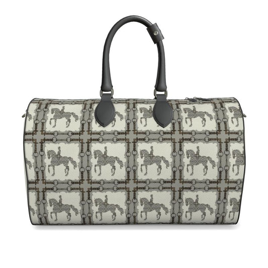 Dressage Piaffe Snaffle Bit Motif over Plaid Art Comforter. Equestrian Bit and Reins art Comforter