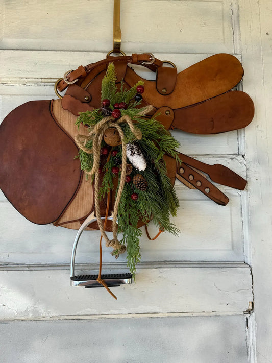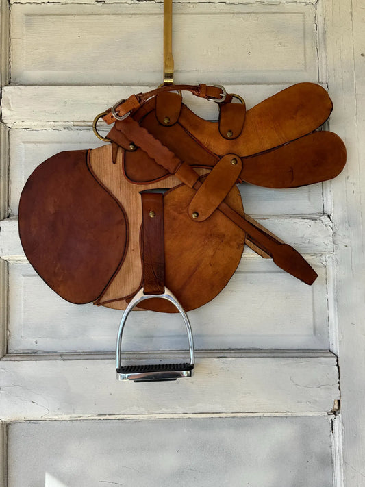 Fox and Hound Hunter Jumper, Leather, Brass, Wood, Art. Authentic Leather and English Stirrup Home Barn Door Wall Decor - Horse Lover gift