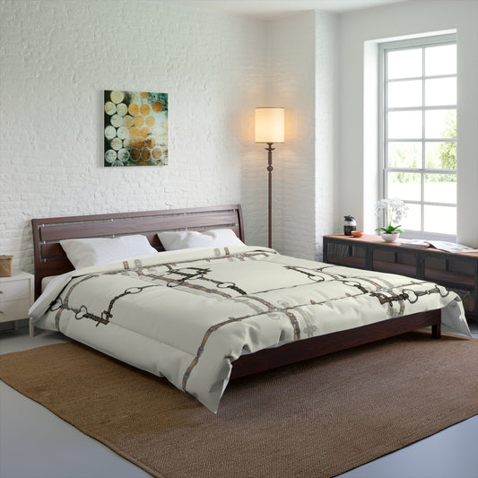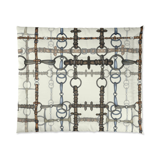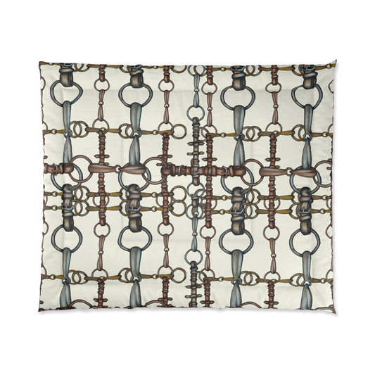 Snaffle Bit Motif Art Comforter. Equestrian Bit and Reins art Comforter