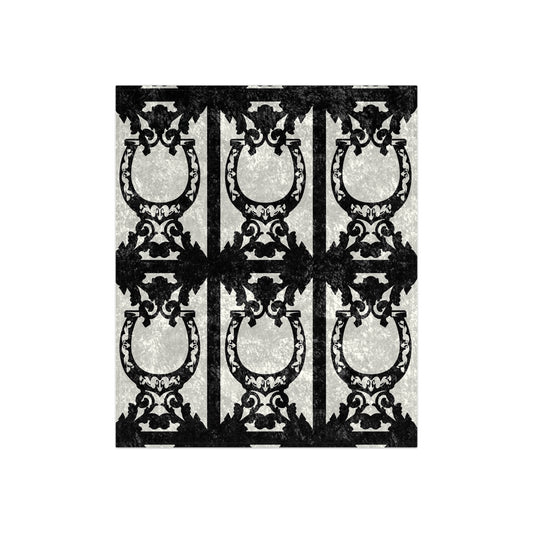 Ivory and Black Horse Shoe Equestrian Motif Crushed Velvet Blanket