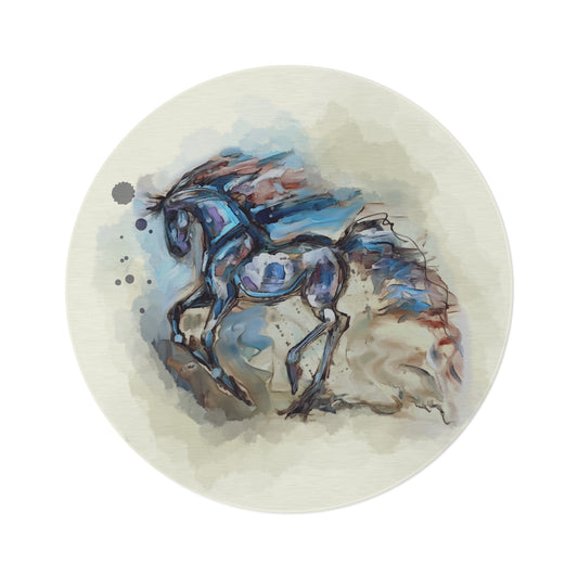 A Running Horse Water Color Equestrian Art Round Rug. Original Art Rug. Show Stall Rug Home Decor