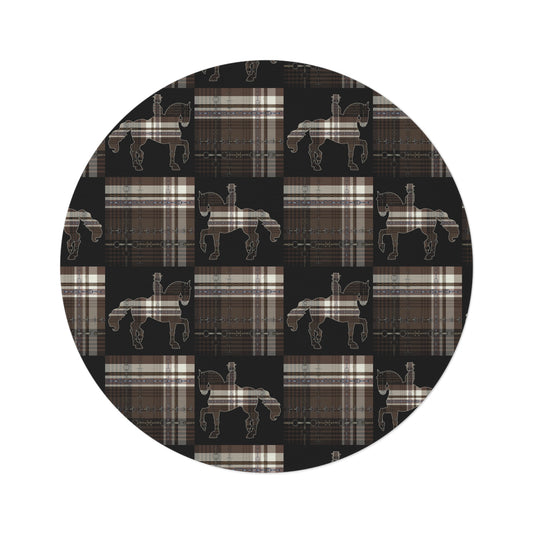 Dressage Plaid Equestrian Art Round Rug. Western Horse Original Art Rug. Show Stall Rug Home Decor