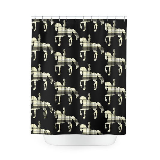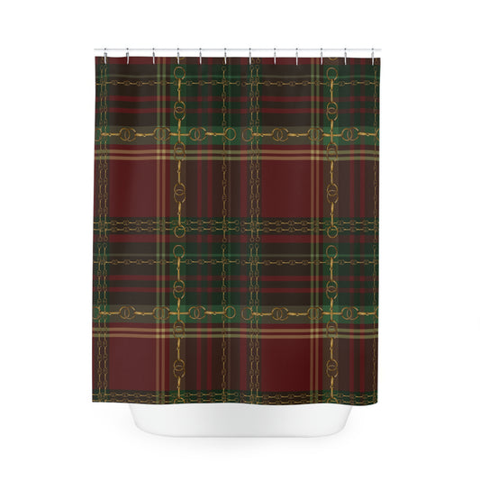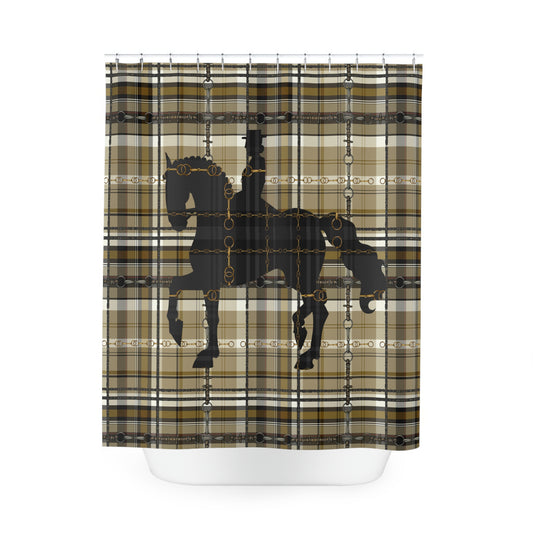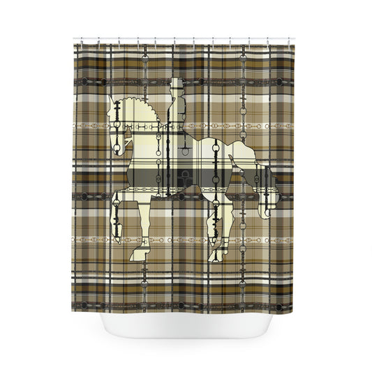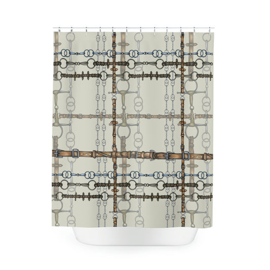 Dressage Plaid and Snaffle bit and stirrup pattern Polyester Shower Curtain. My original equestrian art work printed on a shower curtain.