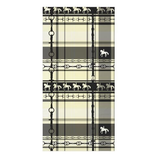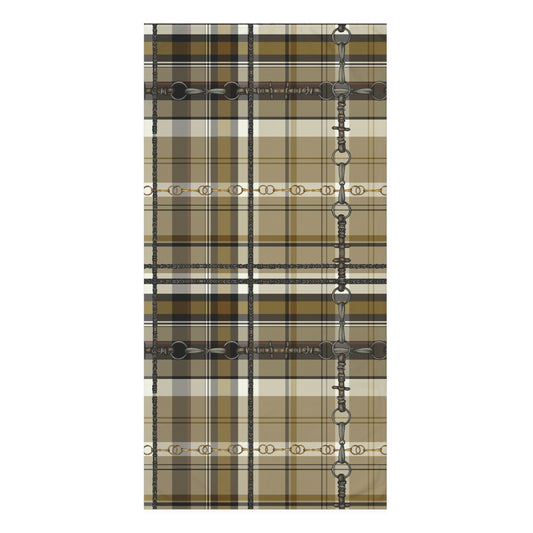 Tan Mustard Black Plaid with my snaffle Bit and reins Artwork Horse Luxury Bath Towel