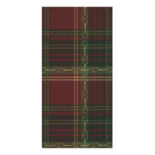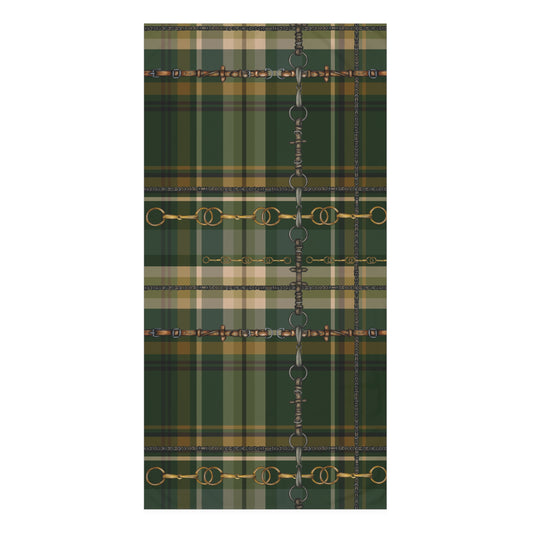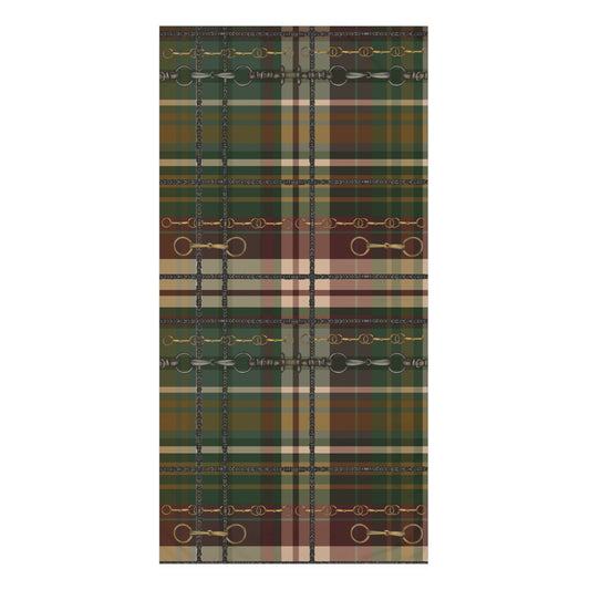 Hunter Green Fox and Hound Christmas Plaid and Snaffle Bit And Reins Design . My artwork on Plaid Horse Luxury Bath Towel
