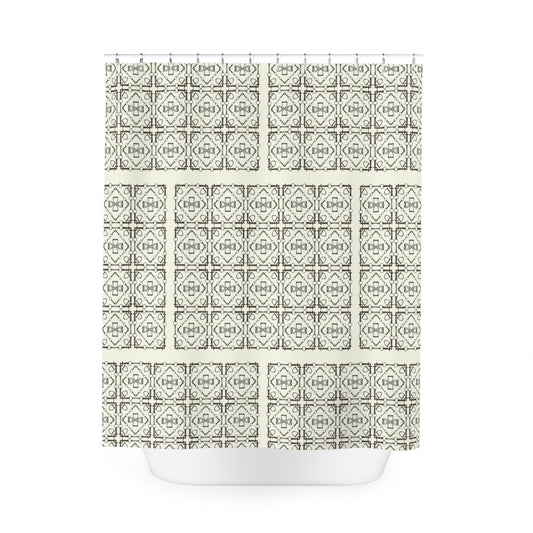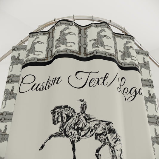 Ivory Snaffle bit and stirrup pattern Polyester Shower Curtain. My original equestrian art work printed on a shower curtain.