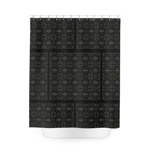 Snaffle bit and stirrup pattern Polyester Shower Curtain. My original equestrian art work printed on a shower curtain.