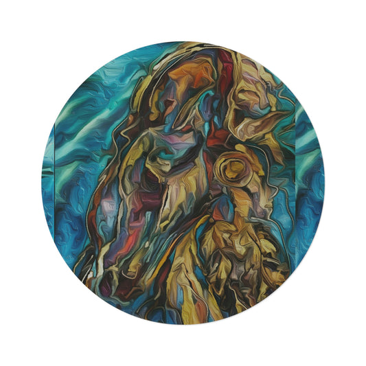 Original Equestrian Art Round Rug. Blue Indian Horse Rug/Mat. My original Artwork printed on a rug. Home Decor. Show Stall Mat