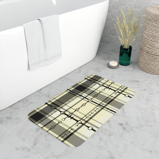 Black and Ivory Plaid with Snaffle Bit Memory Foam Bath Mat