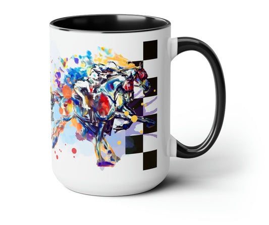 A kentucky Derby Watercolor art. Horse Lover Gift -Two-Tone Coffee Mug 15oz