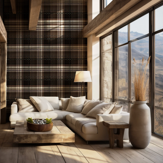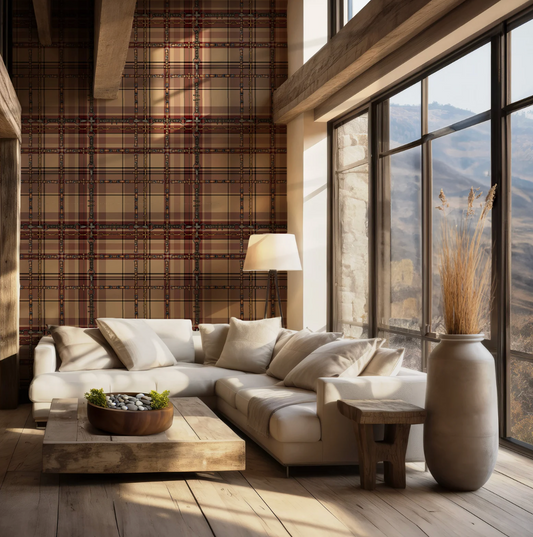 Farmhouse Plaid Wallpaper Bit and Rein Pattern Traditional Red and Brown Plaid Luxury Equestrian Home Decor