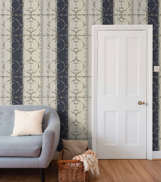 Navy Snaffle Bit Wallpaper Luxury Equestrian Home Decor Farmhouse Wall Accent Wallpaper Neutral Decor
