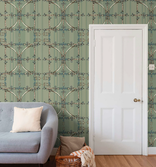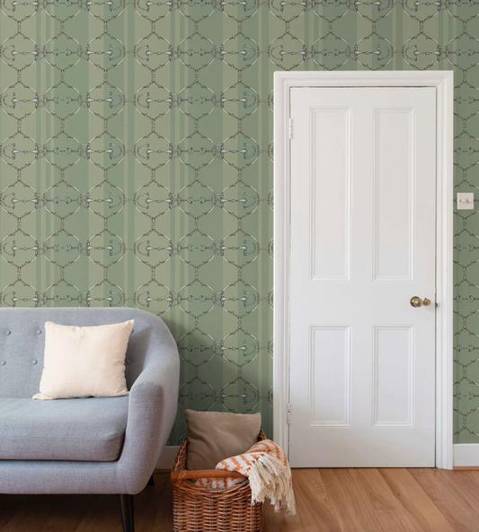 Sage Snaffle Bit Wallpaper Luxury Equestrian Home Decor Farmhouse Wall Accent Wallpaper Neutral Decor