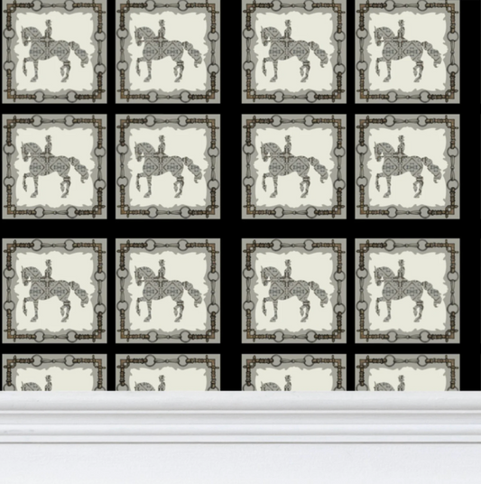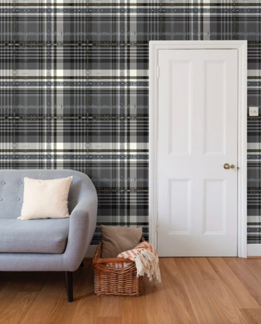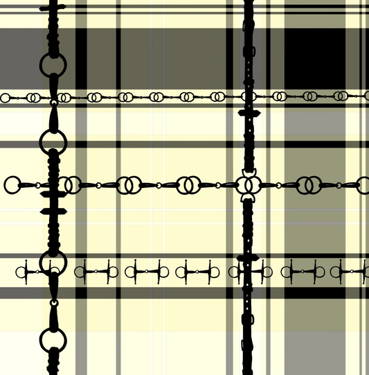 Gray and Black Equestrian Wallpaper Bit and Rein Pattern Plaid Luxury Equestrian Home Decor