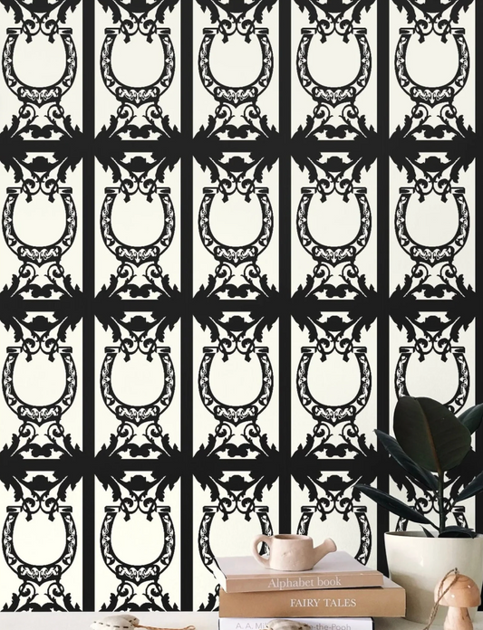 Elegant Equestrian Wallpaper Ivory and Black Equestrian Home Decor