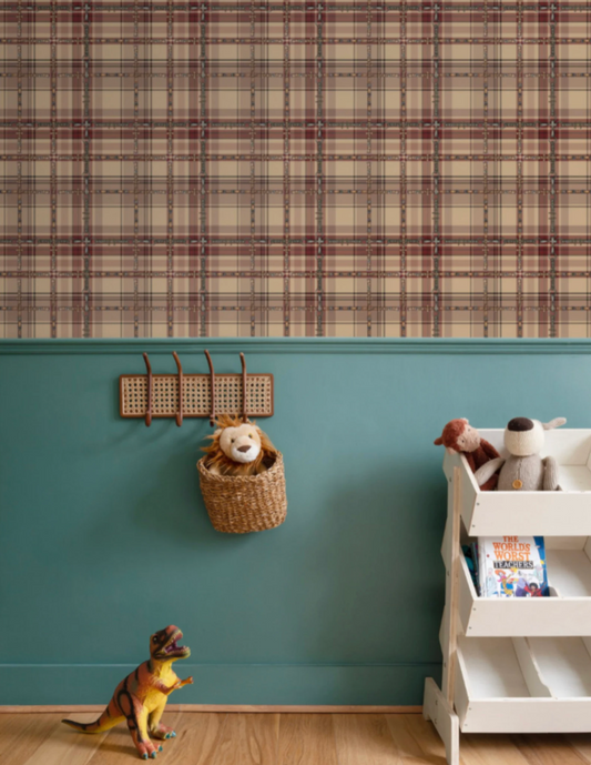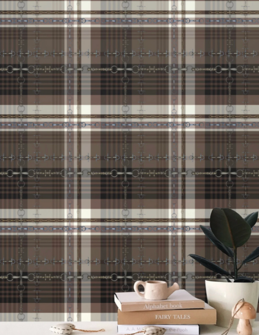 Farmhouse Plaid Wallpaper Bit and Rein Pattern Traditional Red and Brown Plaid Luxury Equestrian Home Decor