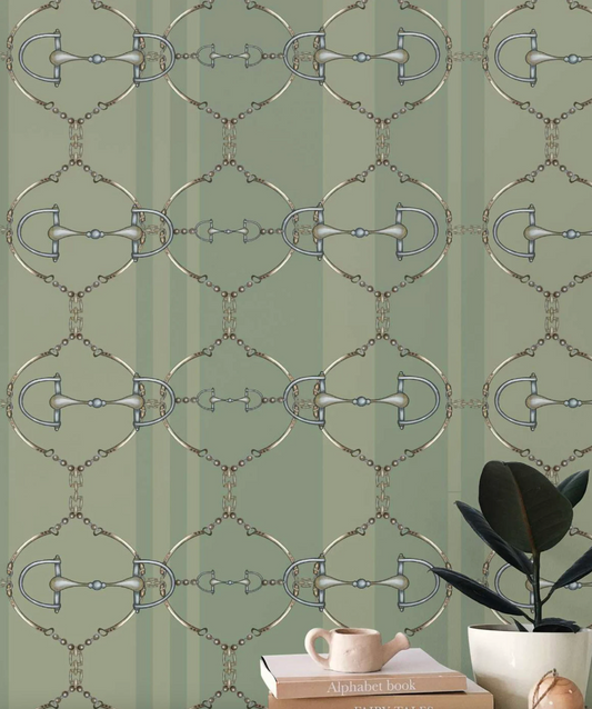 Green Snaffle Bit Wallpaper Luxury Equestrian Home Decor Farmhouse Wall Accent Wallpaper Neutral Decor