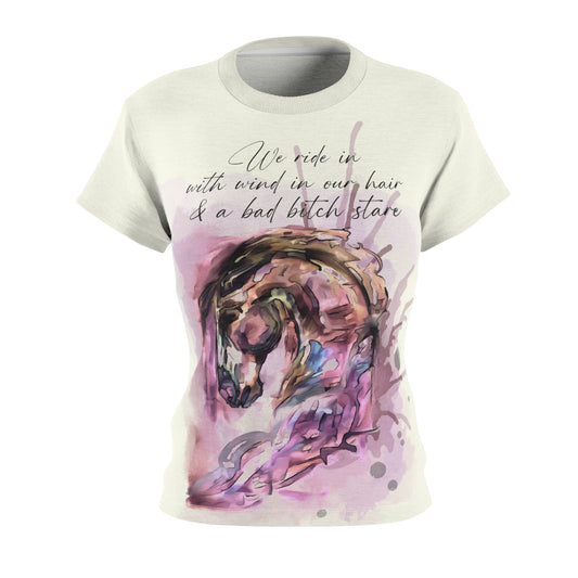 Swearing Mare Watercolor Horse Shirt Women's Cut & Sew Tee (AOP)