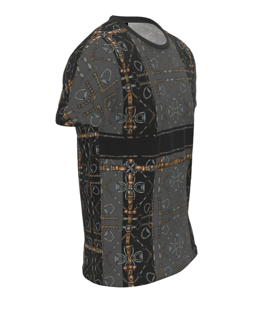 Black and Gray Snaffle Bit and Reins Sporty Equestrian All Over Print T Shirt