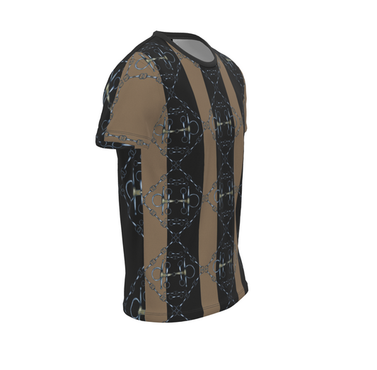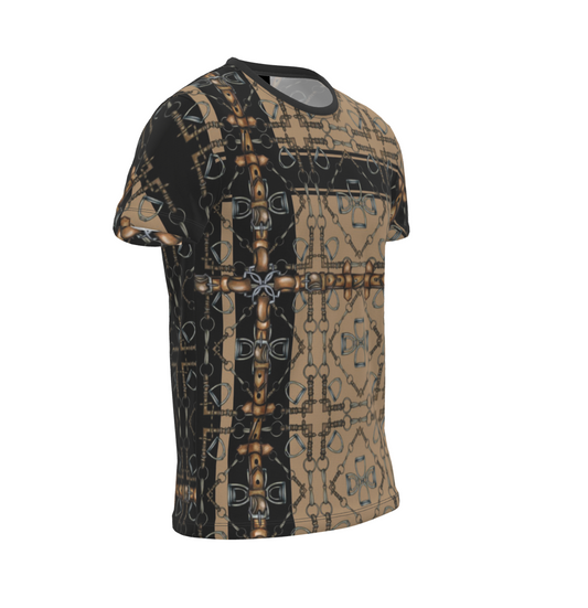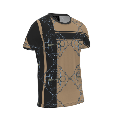 Tan and Black Snaffle Bit Sporty All Over Print T Shirt, Equestrian Fashion