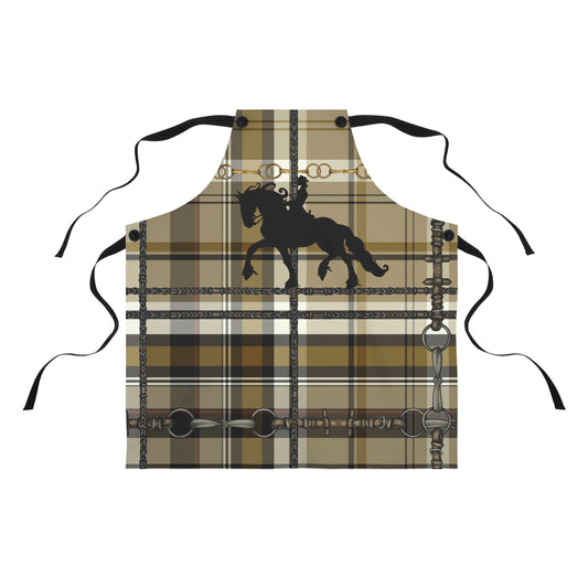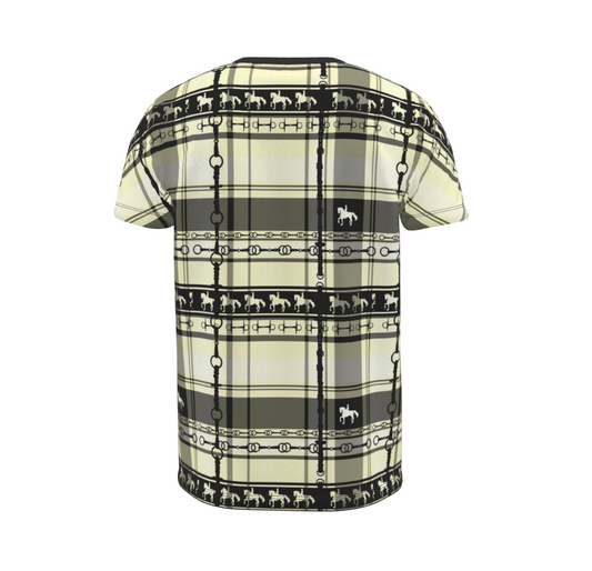 Ivory and Black Equestrian Sporty Plaid All Over Print T Shirt