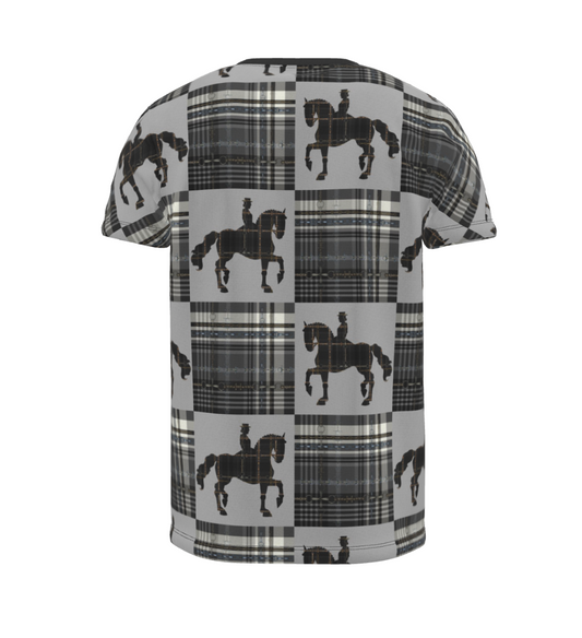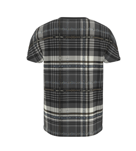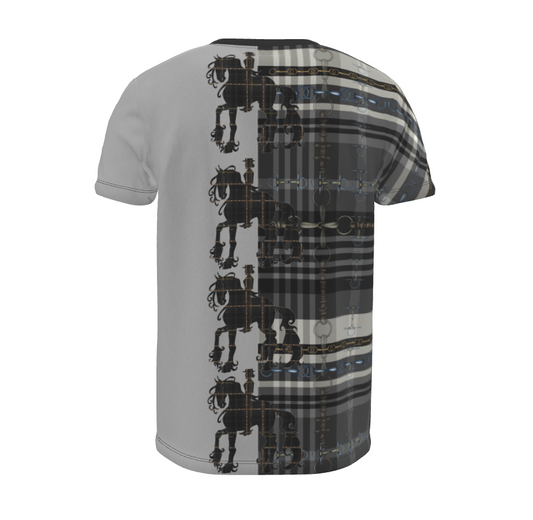 Gray and Black Equestrian Sporty Plaid All Over Print T Shirt