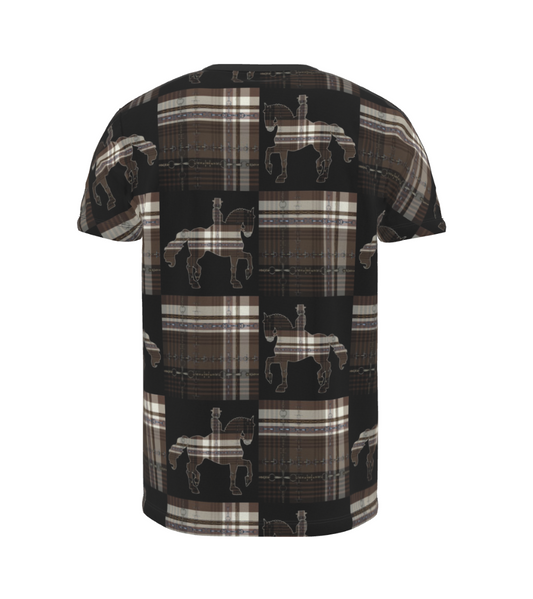 Black and Brown Checkered Equestrian Sporty Plaid All Over Print T Shirt