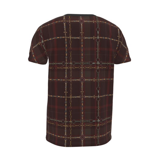 Burgundy Equestrian Sporty Plaid All Over Print T Shirt