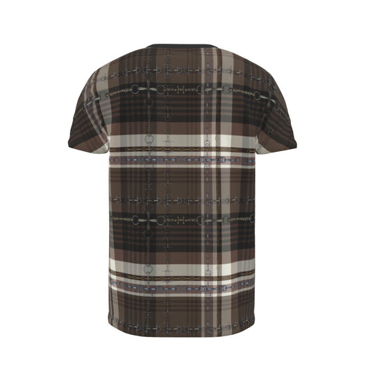 Brown and Black Equestrian Sporty Plaid All Over Print T Shirt
