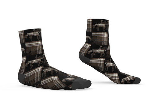 Brown and Black Checkered Equestrian Plaid High Crew Socks