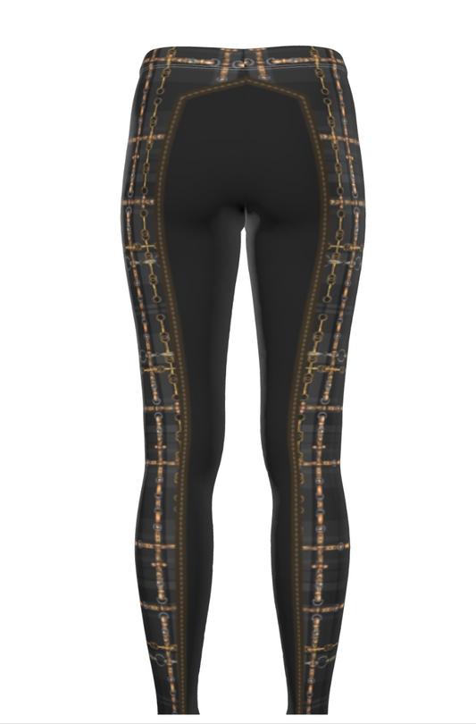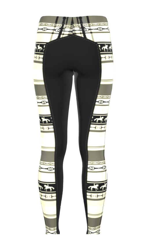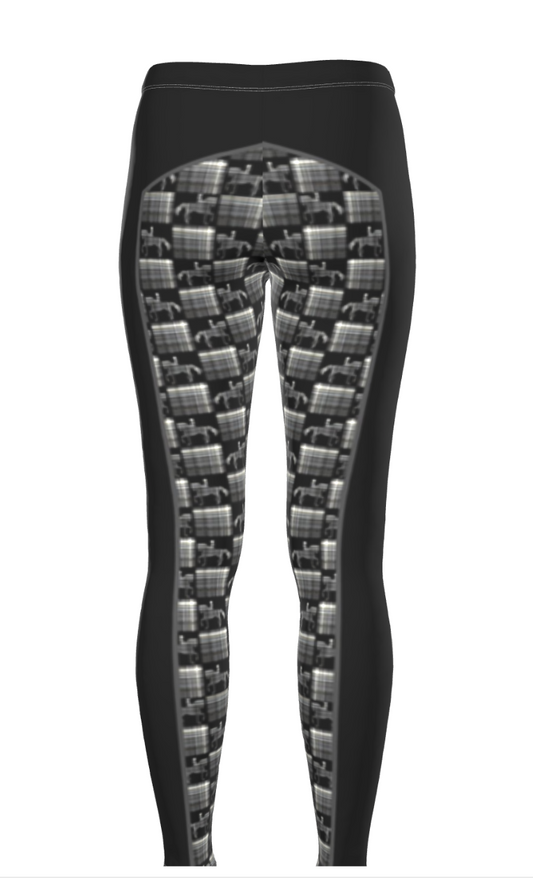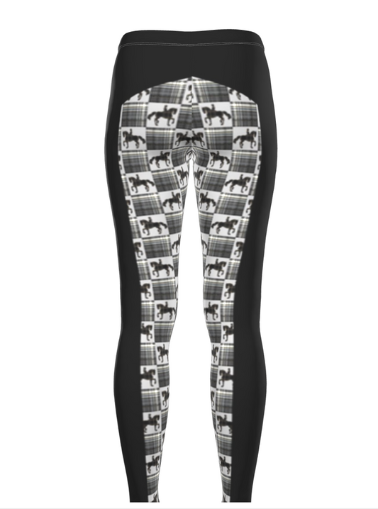 Black and Ivory Piaffe Plaid Equestrian Bit Faux Full Seat Riding Tights/ Leggings