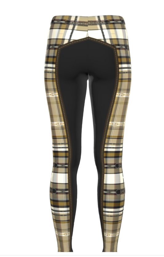 Yellow Ochre and Brown Piaffe Plaid Equestrian Bit Faux Full Seat Riding Tights/ Leggings