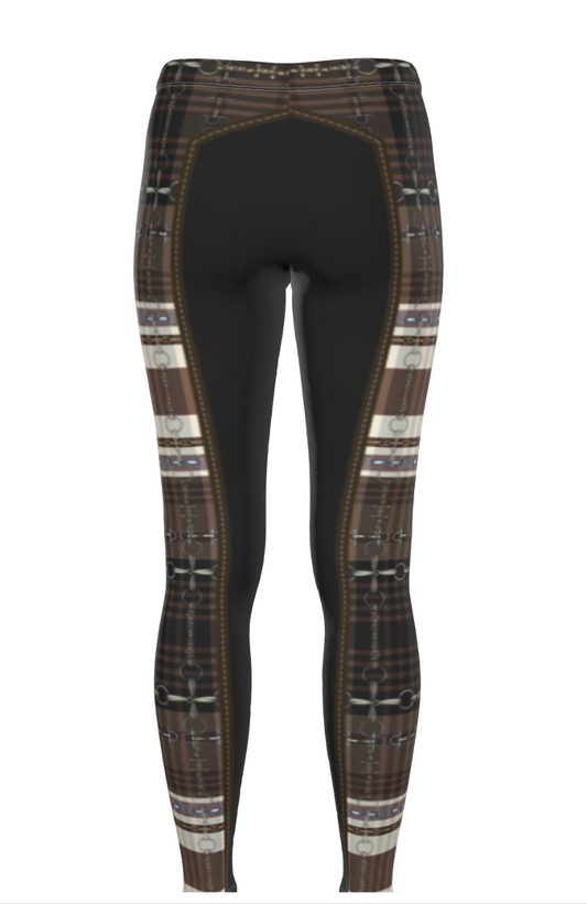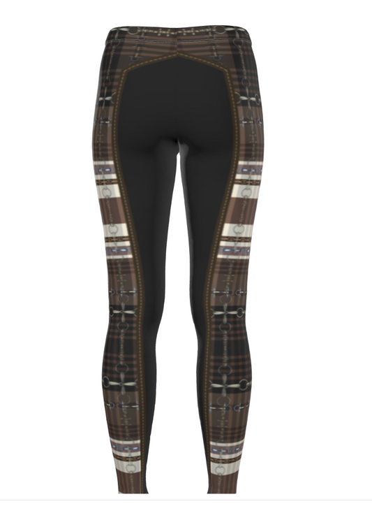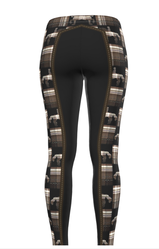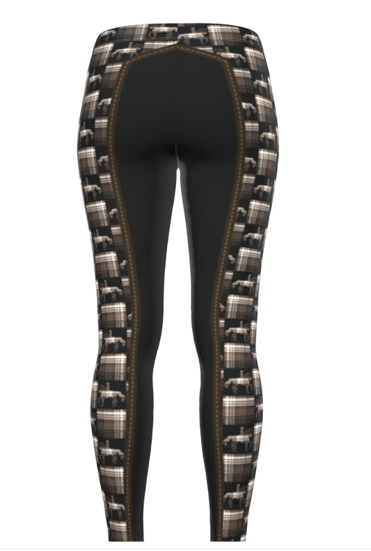 Black and Brown Piaffe Checkered Plaid Equestrian Bit Faux Full Seat Riding Tights/ Leggings