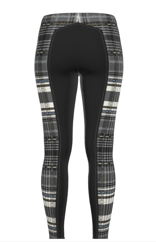 Gray and Black Piaffe Plaid Equestrian Bit Faux Full Seat Riding Tights/ Leggings