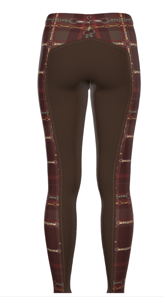 Burgundy Piaffe Plaid Equestrian Bit Faux Full Seat Riding Tights/ Leggings