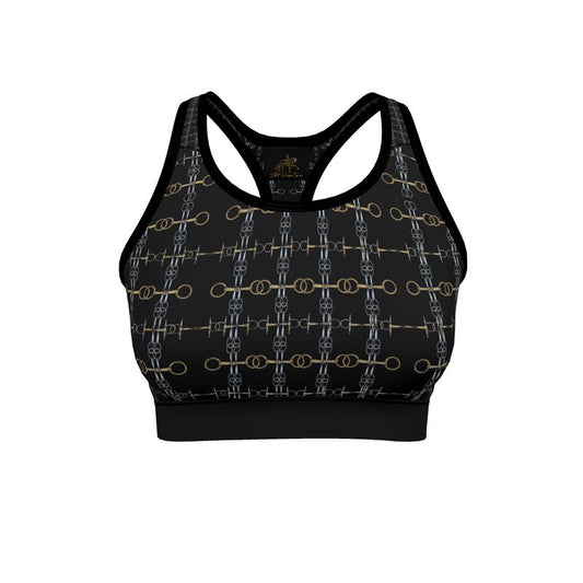 Black and Gold Bit Motif Sports Bra