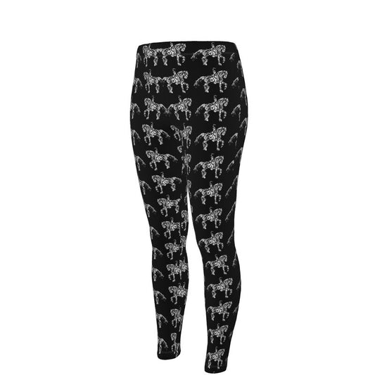 Black Dressage Horse Motif High Waisted Leggings