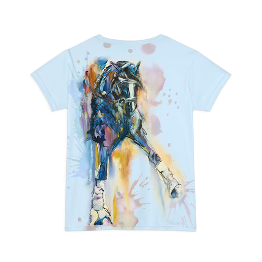 Dressage Watercolor Shoulder-in Women's Short Sleeve Shirt (AOP)