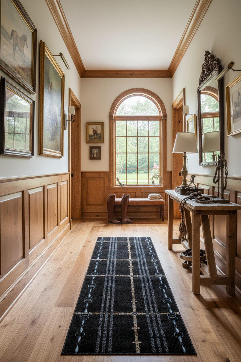 This equestrian style rug is a great addition to any horse lover's home. A unique statement piece printed with original artwork by Nicole Spitler.
