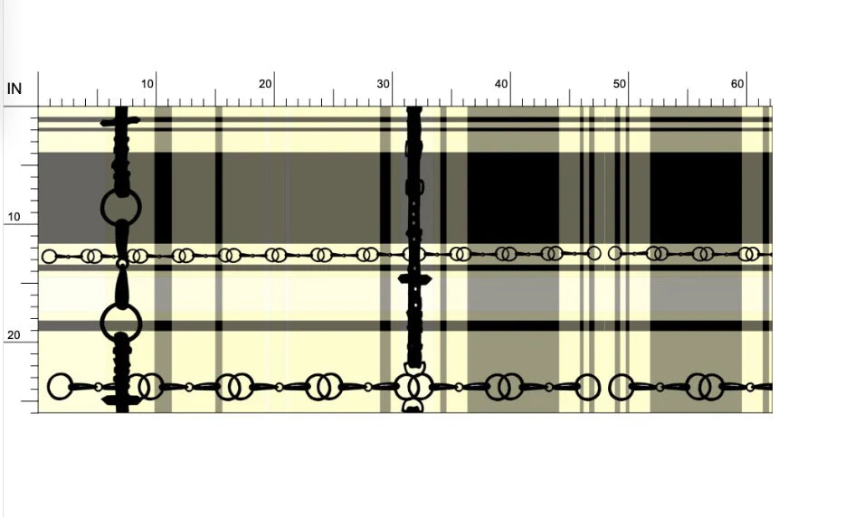 Ivory and Black Equestrian Plaid Fabric Luxury Equine Art for Custom Home Decor and Sewing Projects 42x36 inches Pure Cotton